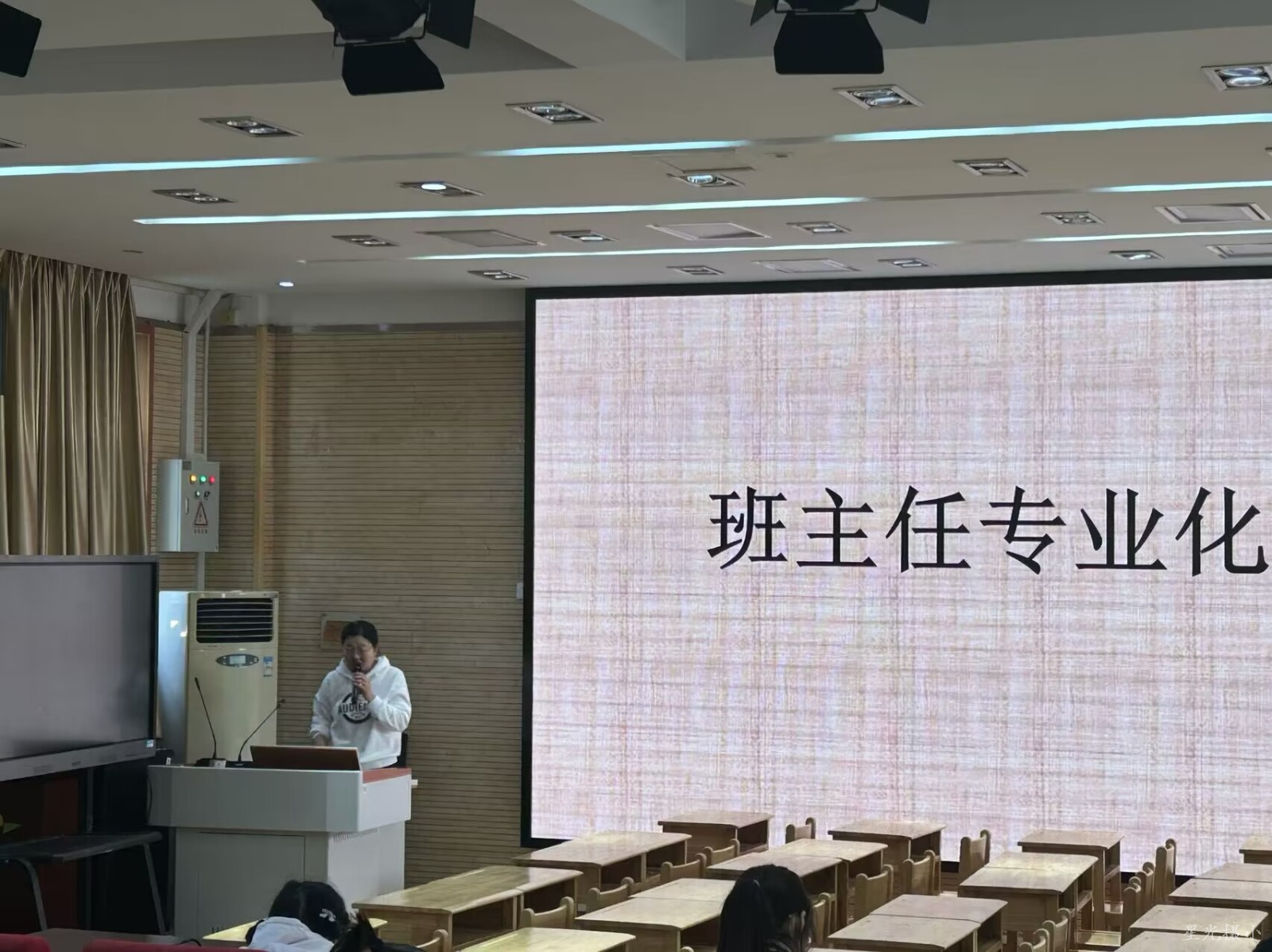 活动的第二部分是由南京市德育学科带头人王青老师带来的专题讲座,讲座主题为《班主任专业化成长》。王青老师带领老师们了解德育学科带头人的评选细则。由此提出“班主任是学生的精神关怀者”,其专业道德、专业素质、专业技能在很大程度上决定了学校德育的有效落实。班主任的专业化发展是一个目标,是一种追求,也是一项事业,需要班主任在教育教学实践中去体会和感悟。
