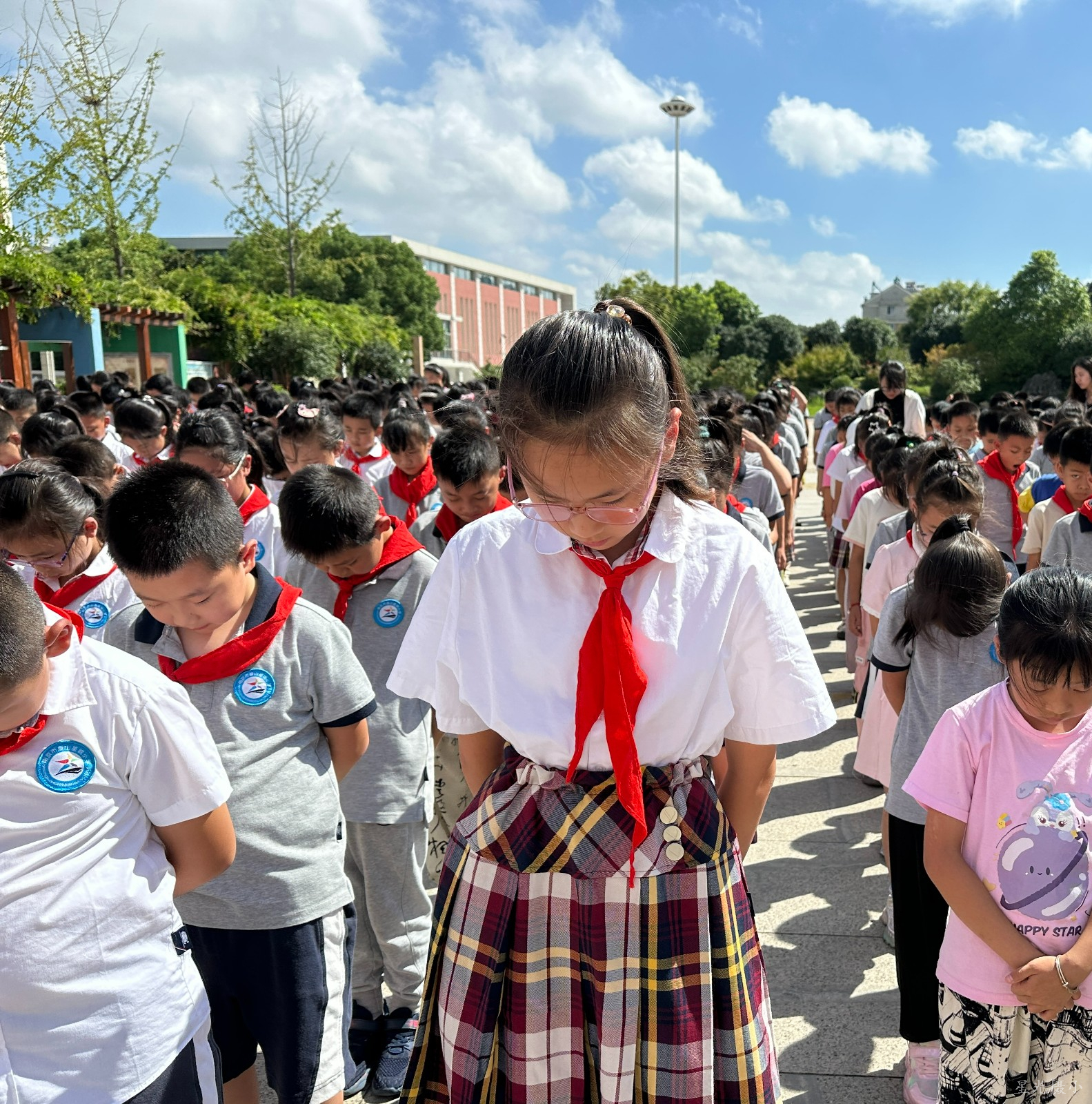 最后,全体少先队员,面向鲜艳的五星红旗,进行了庄严的宣誓:勿忘国耻,奋发图强,牢记历史,爱我中华。一声声清脆整齐的响亮誓言,勉励我们全体师生铭记历史,不忘初心,努力成为新时代的优秀接班人。