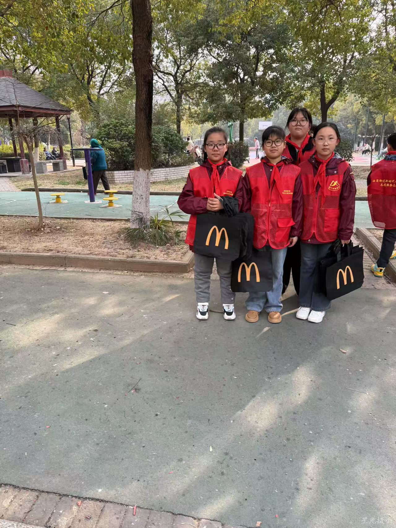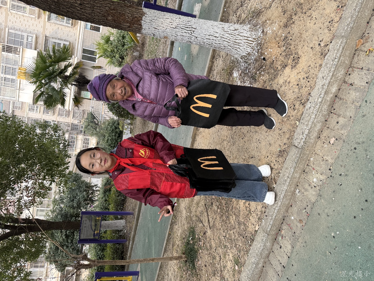 在社区广场,少先队员由麦当劳赞助提供的精美环保袋,向居民宣传环保知识,发放精美环保袋,宣传垃圾分类,人人有责,不少居民表示,孩子们的宣传会让他们之后更加注重环保行动。