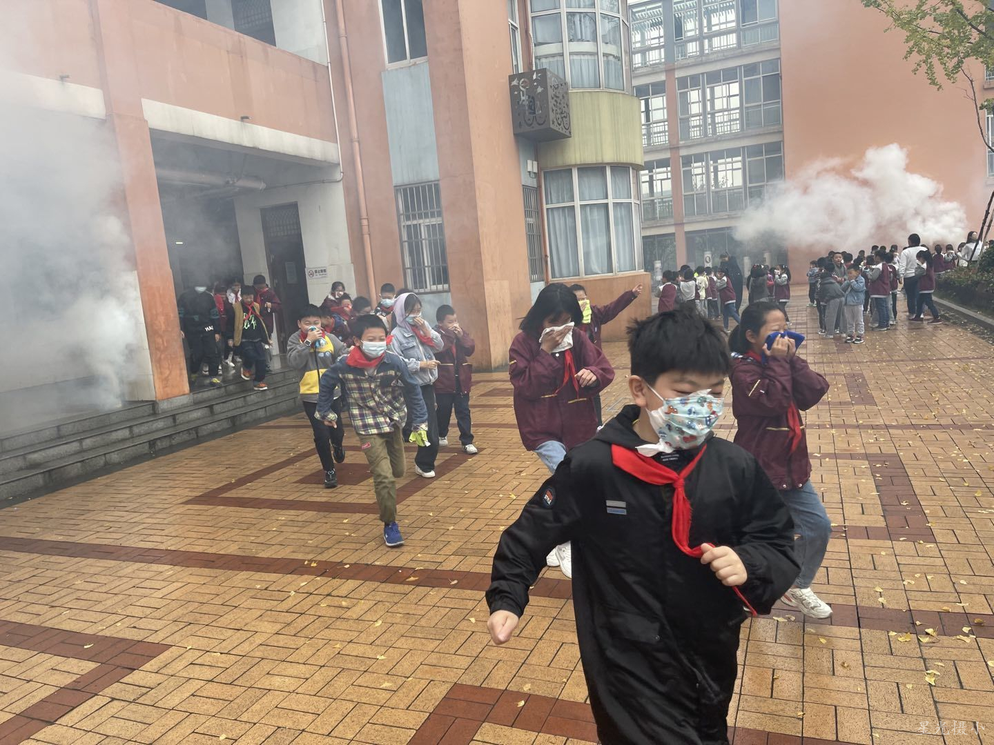 上午10点,刺耳的消防警报声被拉响,此次疏散演练总指挥陈卢主任下达了“请同学们立即撤离”命令。各班主任迅速地引导楼内学生快速疏散,各班主任和应急疏散指引老师立即到达指定岗位,引导教师、学生快速疏散,老师们带领学生弯着腰、猫着步,用衣服、毛巾等捂住口鼻,沿着指定的疏散通道快速前进,有序撤离到学校操场的安全地带。