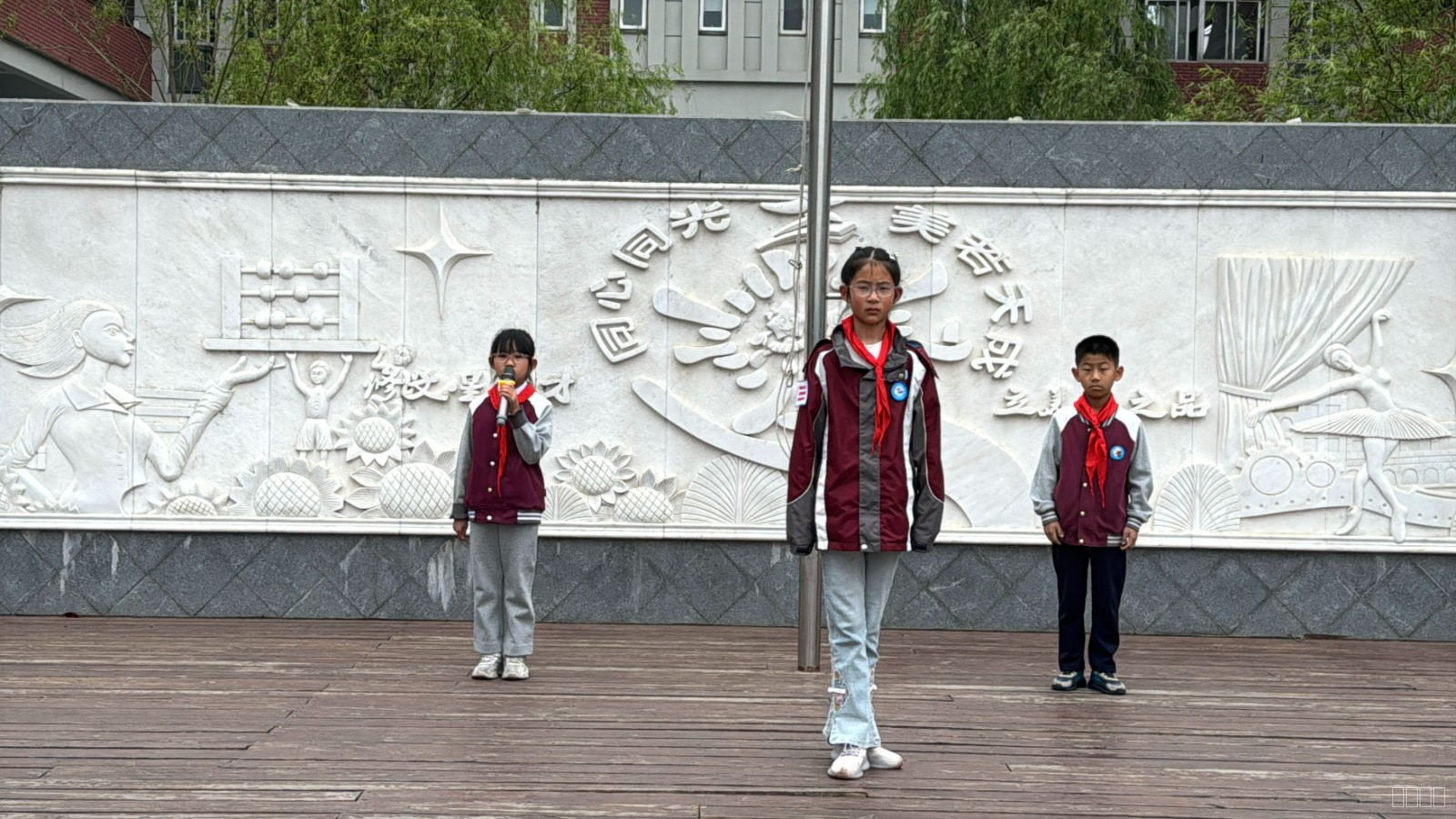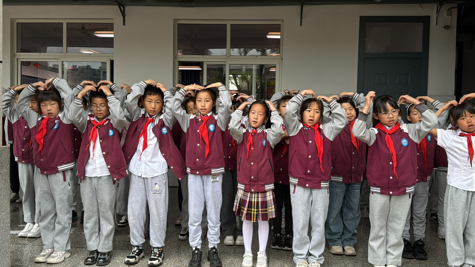 伴随着激昂的《义勇军进行曲》,五星红旗在全校师生的注目中冉冉升起。紧接着,二(5)中队全体队员带来了精心准备的手势舞表演《我们的航天梦》。他们身着整齐的校服,随着音乐的节奏,用手势舞出了对航天科学的无限憧憬与向往。每一个动作都充满了力量,每一个眼神都透露着坚定,赢得了在场师生的阵阵掌声。